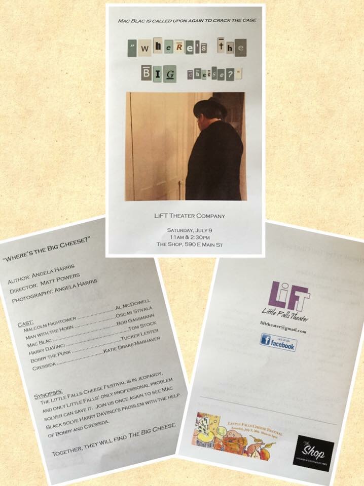 She has created a series of plays that all involve Mac Blac, Little Falls’ only professional problem solver, and his adventures solving problems for the good folk of Little Falls. No problem is too trite for Mac. With clever interior monologues, grit, and an assistant with the best legs “this side of Schenectady,” Mac entertains audiences across the city.